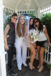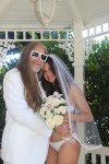 woke up earlier than desired (630am) to prepare myself for the 9am nuptials at graceland chapel (where bon jovi got married!). got to hardrock at 8, met up with js dear friend tommie sunshine and his beautiful bride daniela, and headed on over to the chapel! so fun and easygoing. daniela had on a white bikini and veil and some clear stripper heels, and tommie wore a white suit with no shirt. hahah lovez it. her bridesmaids were this dj duo from sweden, both in orange mini jumpsuits, ponytails, and platform boots and i do mean plat. form. oh man an elvis wedding is the bomb!!! elvis walked daniela down the aisle while singing.. i dont remember what he sang. it was a very short ceremony but packed with songs and lots of elvis song title references. i think we were all nonstop laughing and smiling. weddings should be that easy! no stress at all mon. elvis had us singing along to “i cant help falling in love with you” and “viva las vegas” hahaahahhaha. i think my favorite part of the wedding was when elvis asked tommie if he wanted to be referred to as “thomas” or “tommie” and tommie asked daniela for her input. she responded that it was up to him, whatever he wanted, and he replied, “well from here on out, its all up to you anyway,” to lots of laughs. a man who recognizes! amen etc. ps tommy lee was a no show, apparently he was face down somewhere. im guessing deep in vag jooz.